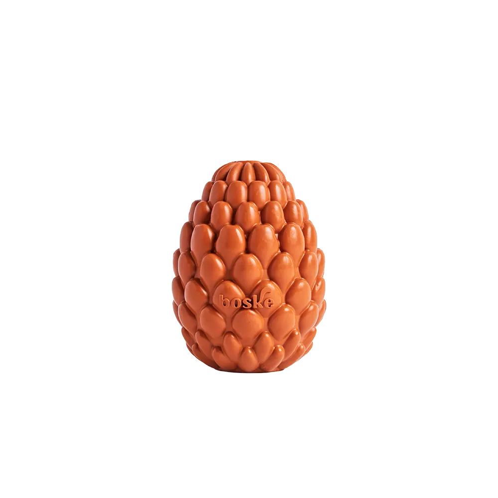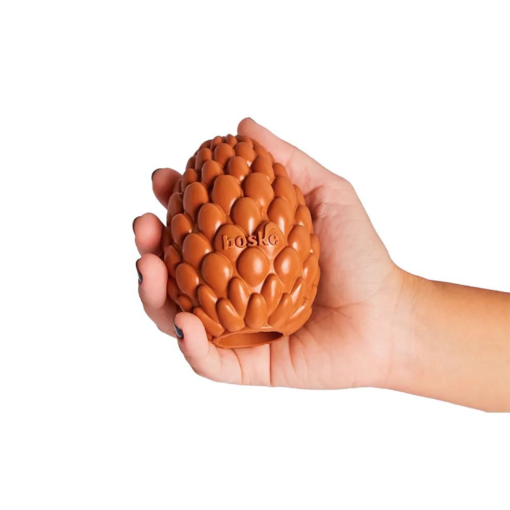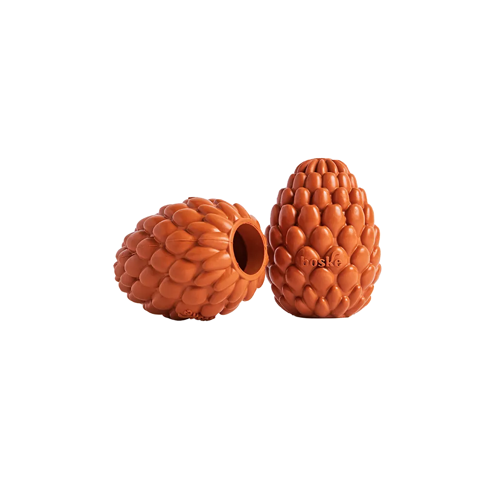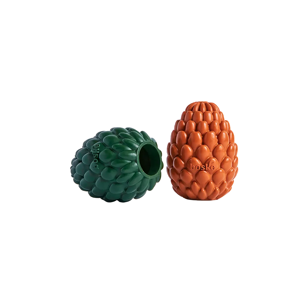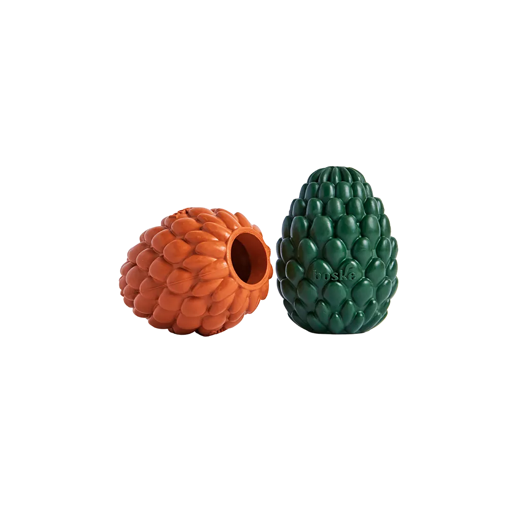 Brinquedo de borracha natural, a Pinha Boske foi criada para divertir e estimular. Pode ser recheada com alimentos ou ração, incentivando o instinto de caça e mantendo o pet entretido por mais tempo. Ajuda a reduzir a ansiedade, promove saúde bucal e pode ser usada como mordedor ou bolinha. Suas pétalas facilitam a pega e tornam as brincadeiras mais seguras. Disponível em duas resistência para diferentes mordidas: moderada e forte. Fácil de lavar e pode ir ao congelador.