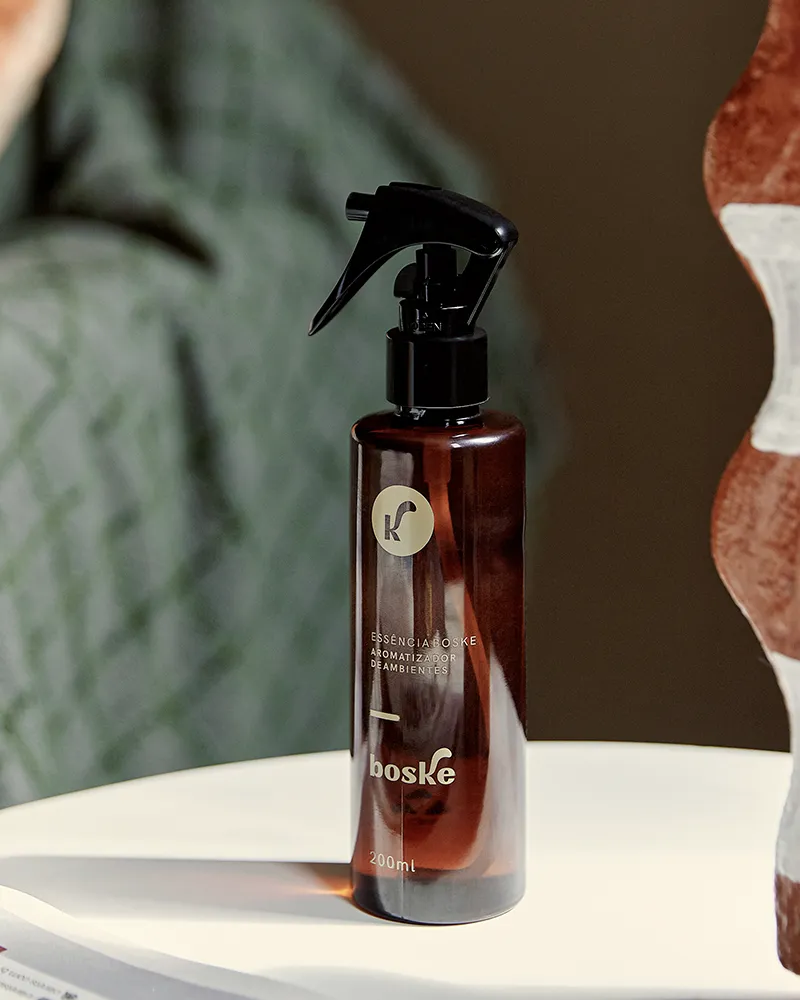 A Essência Boske é um aromatizador de ambientes feito com óleos essenciais e sem álcool, respeitando o olfato dos pets. Seu blend exclusivo combina notas de Oakmoss, Vetiver, Cedro, Mandarina e Patchouli, proporcionando um ambiente calmo e agradável. Aprovado pela Anvisa, é ideal para uso em casa, carro e espaços do pet. Não deve ser aplicado diretamente no animal. Agite antes de usar.