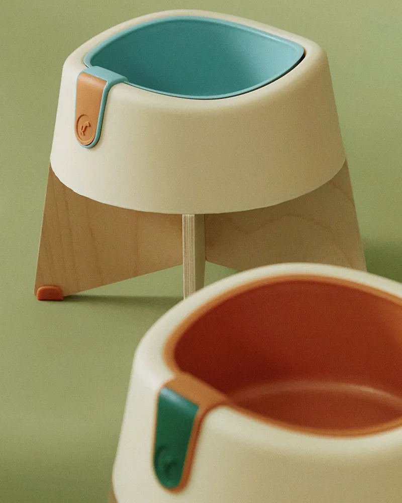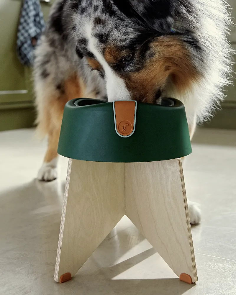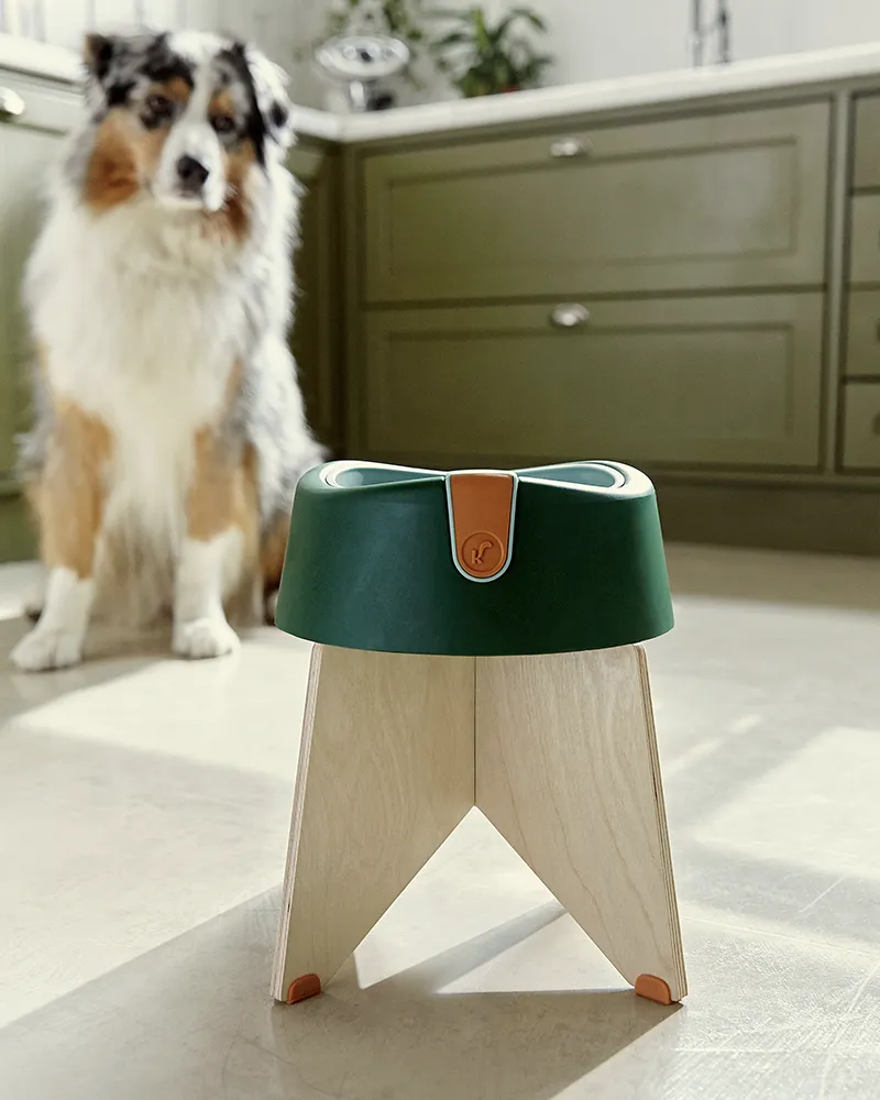 Suporte para o Comedouro Sekoia, feito em compensado naval resistente e pés de borracha natural. Fácil de montar e desmontar, disponível em dois tamanhos para cães de diferentes portes, proporciona uma alimentação mais confortável, ajudando na mastigação e no cuidado com as articulações. Ideal para o dia a dia e para levar em viagens.